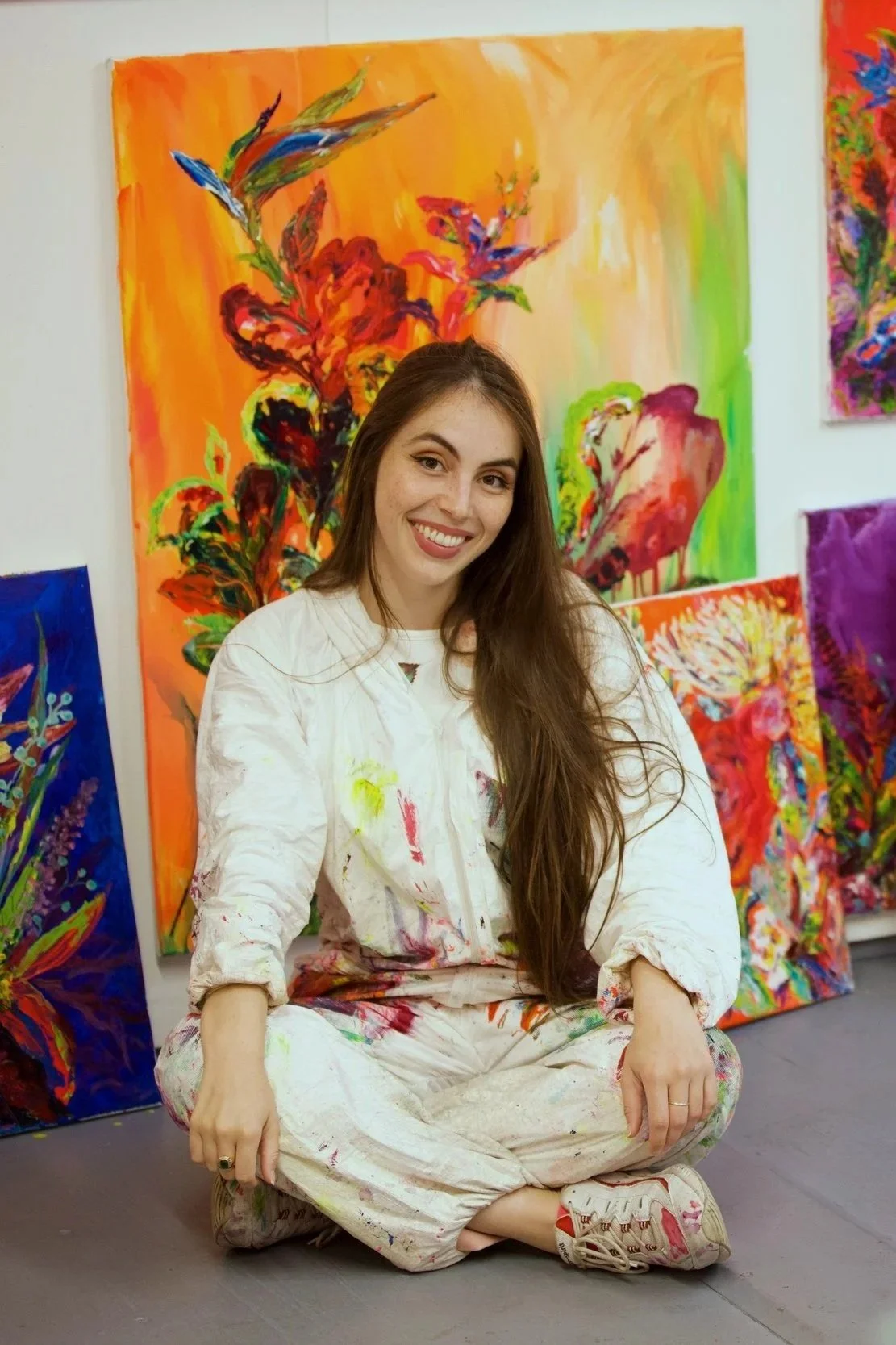 Caroline Stoughton paints to recapture the feelings of positivity and confidence, like those that she experienced while her grandmother was still alive. Her grandmother passed away from Alzheimer's and dementia, and from this experience, Stoughton realized that all we truly have is a moment. She believes that memories may fade, but feelings are forever. Her paintings, which feature highly pigmented colors and subjects drawn from nature, explore how we can be reminded of these loving feelings, even without a specific memory.